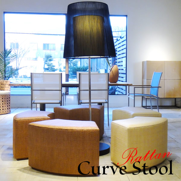 説明文: 見た目がカーブしているスツールです。複数を並べて円形に設置もできます。