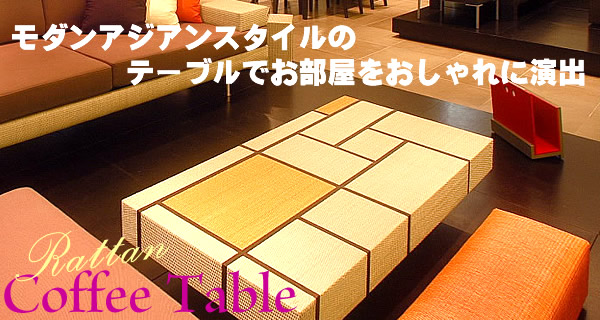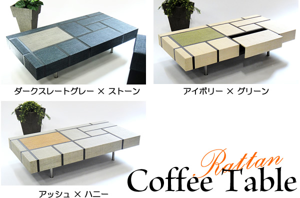ラタン素材のインパクトあるルックスのコーヒーテーブル!